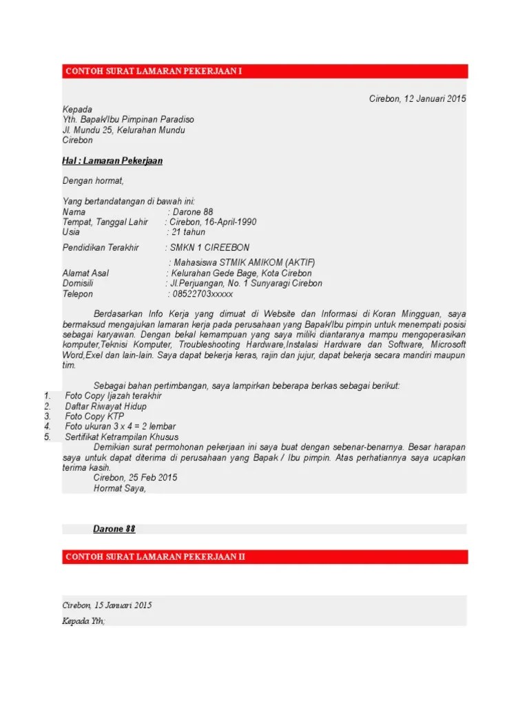 Selain surat lamaran dokumen penting lainnya yang harus disiapkan pada saat melamar kerja adalah daftar riwayat hidup atau curriculum vitae cv lamaran pekerjaan word. 3 download contoh surat lamaran kerja resmi, baik dan terbaru ms word.